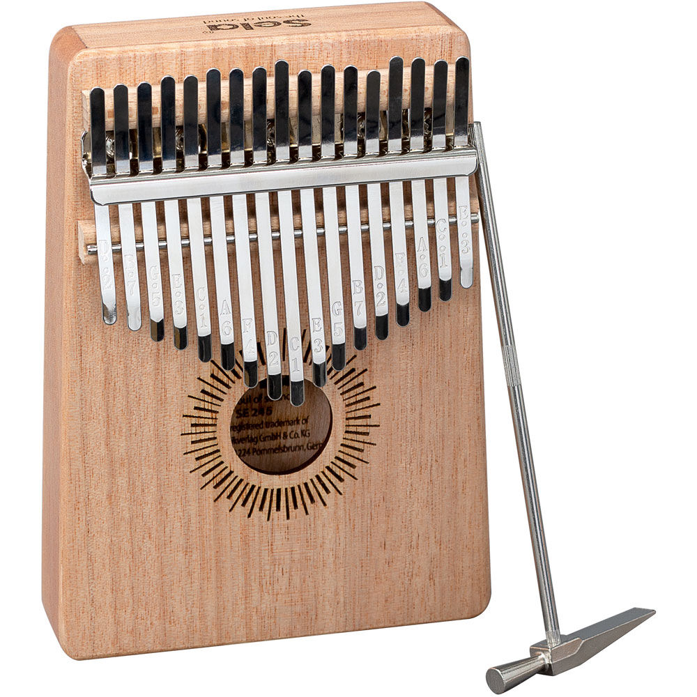 The Sela Kalimba 17 is made of high quality mahogany wood. The body amplifies the low frequencies and thus produces a full, clear and warm sound with a fascinating resonance.