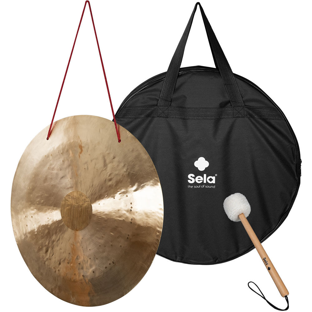 The Sela Wind Gongs are real masterpieces, handmade in China from a special bronze alloy. They are available in various sizes. The larger the model, the deeper and also more voluminous the sound when struck. The scope of delivery of each model includes a mallet made of maple with a plastic head with velvet cover and a carrying bag with zip.