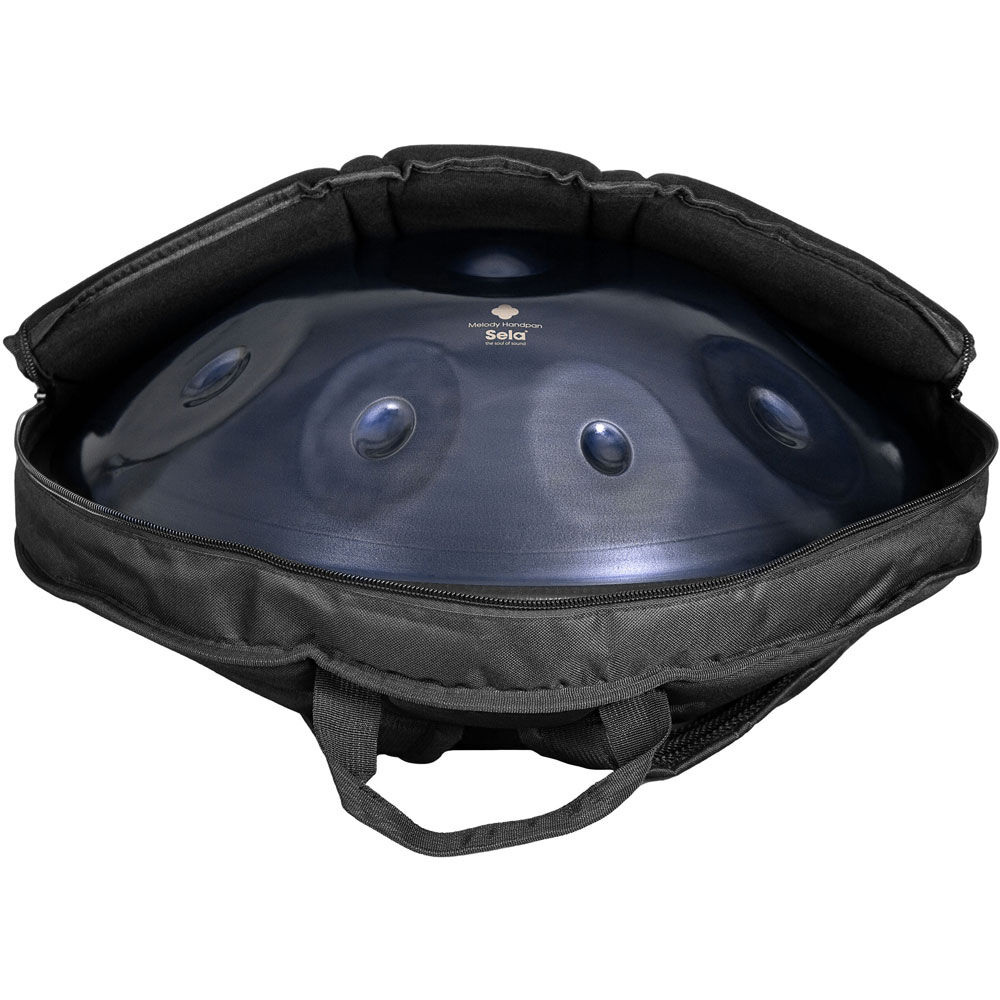 Each Sela Handpan comes with a bag made of tear-resistant nylon fabric, which, thanks to its good lining, provides optimal protection during transport. It can be carried either by hand with the two handles or comfortably as a backpack with the adjustable shoulder straps. A practical outer compartment offers enough space for small accessories such as a metronome.