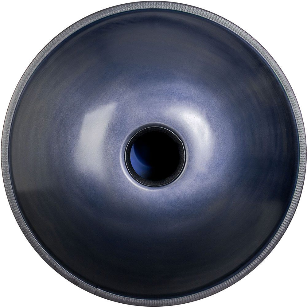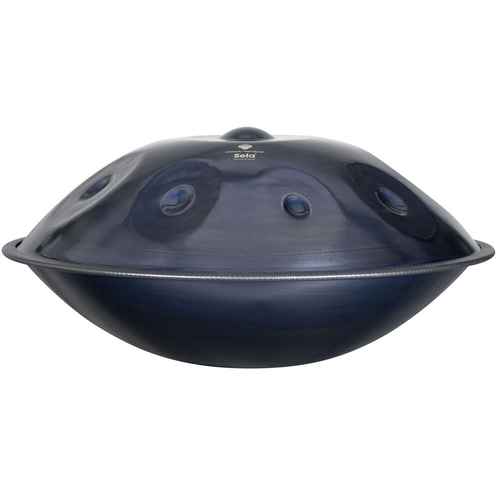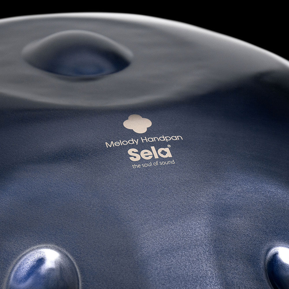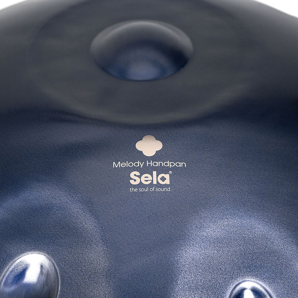 Sela Melody Handpans offer an outstandingly affordable entry into the world of handpans without having to make any compromises in sound and workmanship. They are partly machine-made and consist of nitrided steel. Nitriding hardens the surface of the handpan, which gives it a percussive sound that decays much faster than that of stainless steel handpans. Due to their shorter sustain, nitrided handpans are also ideal for fast playing, as the notes are more clearly separated from each other and overlap less. This property is also very beneficial for beginners, as improvising and playing by gut feeling is much easier. Handpans made of nitrided steel require more care than stainless steel models and should therefore be cleaned regularly and protected from moisture. Sela Melody handpans have a matt, dark blue finish, which gives them a subtle and fascinating look.