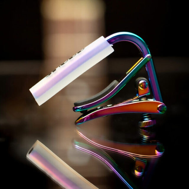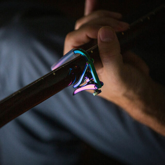 Our Paua Pearl capo uses the same durable titanium process as our other Capo Royale models, so its color-shifting beauty will last practically forever. And its randomly occurring color patterns make each capo unique.