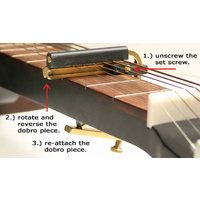 Unlike other Dobro capos that attach only to the strings, the Shubb clamps solidly to the neck to provide great tone. It uses the same patented locking action of our Shubb guitar capo, and it aligns by touching the fret, not by eye, making it fast and accurate.
