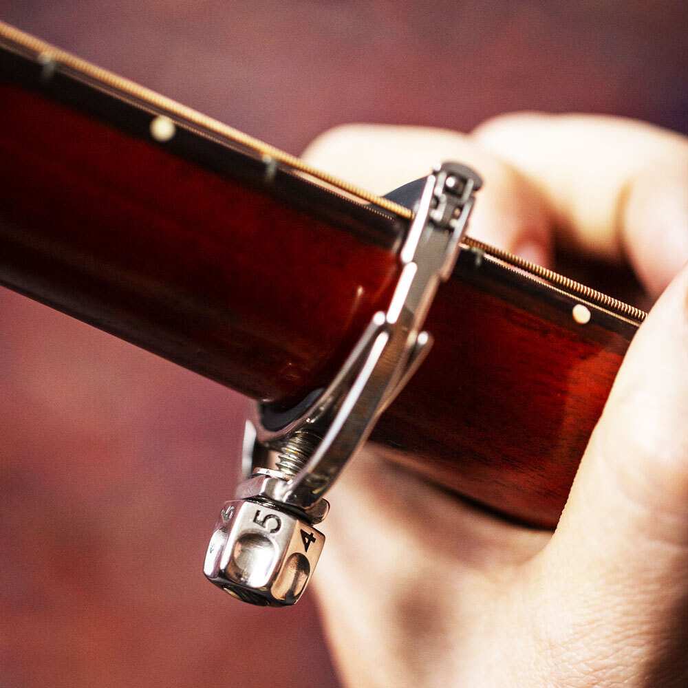 - Its innovative adjusting knob makes it the most ergonomic screw-operated capo.