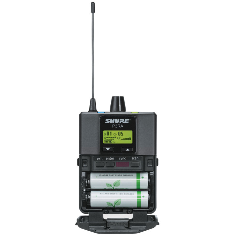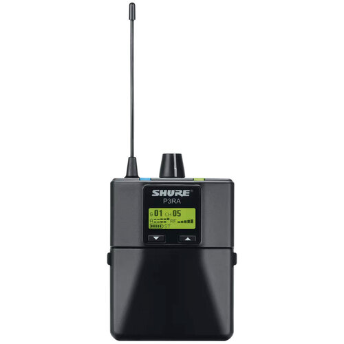 The P3RA is a premium wireless stereo bodypack receiver for use with the PSM300 Personal Monitor System and delivers professional personal monitoring with 24-bit digital audio processing and reliable performance. Includes LCD screen, 2-band shelving EQ, MixMode technology, stereo mode, and frequency scan and IR sync.