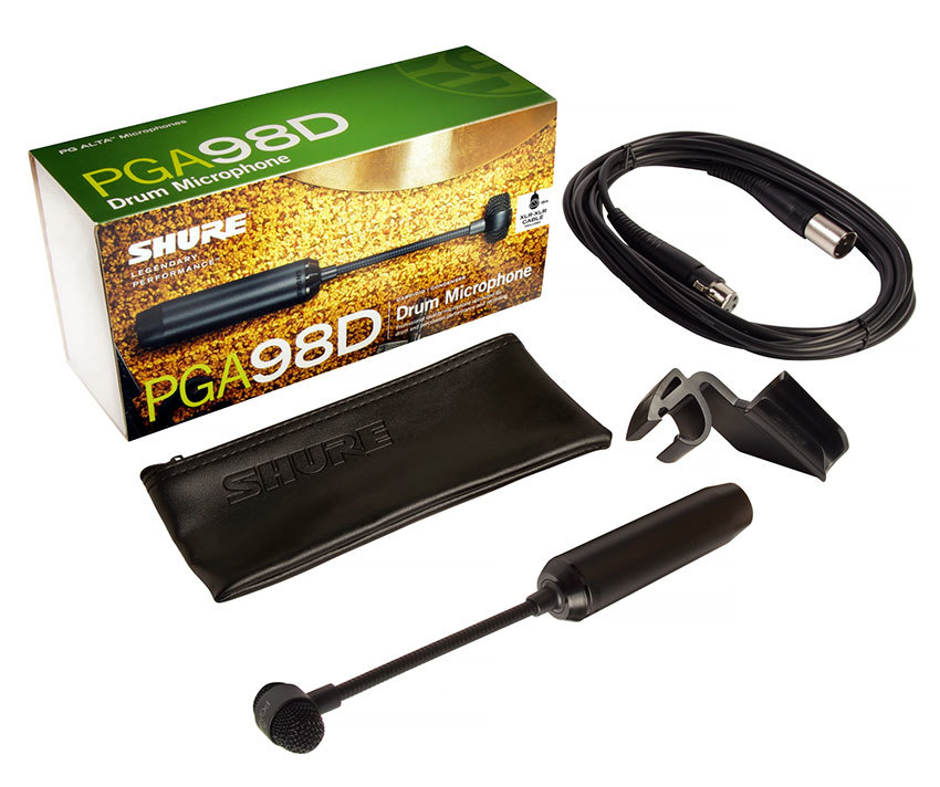 The PGA98D is a professional quality drum microphone with an updated industrial design that features a black metallic finish and grille offering an unobtrusive visual presence. Legendary Shure quality construction ensures exceptional performance in rigorous environments.