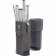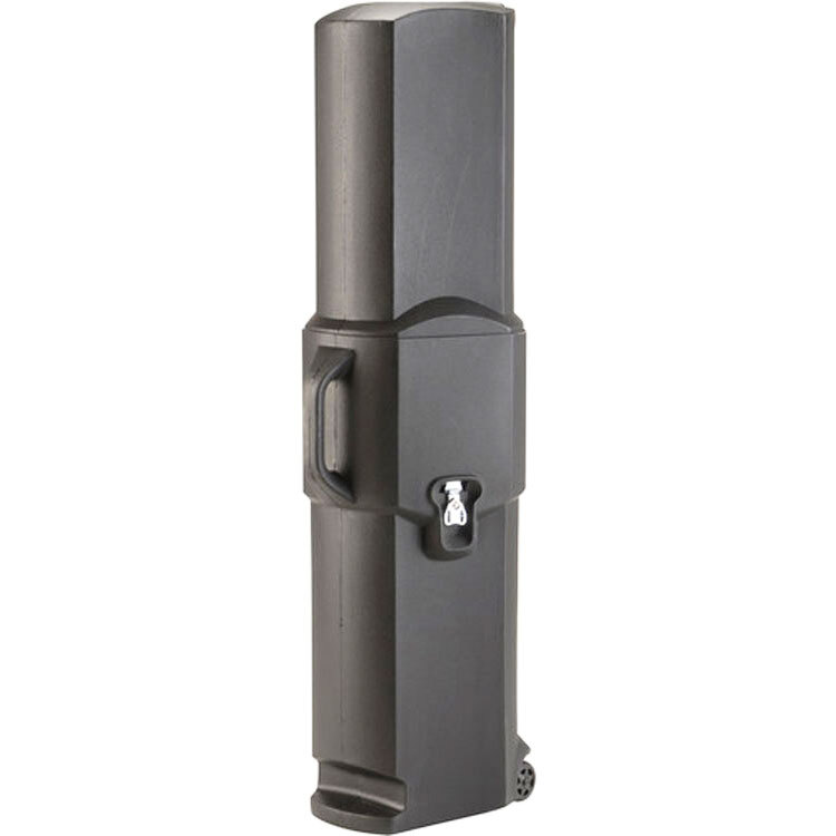 The SKB ATA case is rotationally molded with slide-in cap design for compact shipping and storage. Designed to transport your drum stands and hardware, its patented computer design provides Roto-Molded indestructibility. In-line skate wheels let it glide through airports. Molded Sure Grip handle balances the case while carrying or loading. It meets or exceeds ATA specs and has padlocks for security.