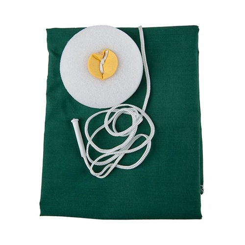 14" X 14" hanky with 45" cord with drop weight. Swab is fashioned from soft cotton surrounding an enclosed weight. Durable & washable.