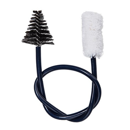 Flexible coiled wire with bristle brushes coated in vinyl plastic to protect your instrument.