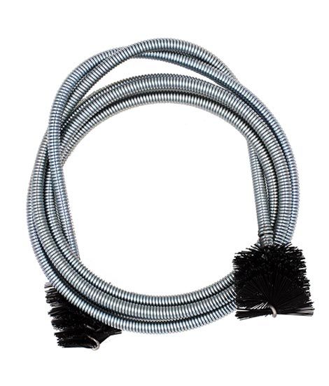 Flexible coiled wire with bristle brushes coated in vinyl plastic to protect your instrument.