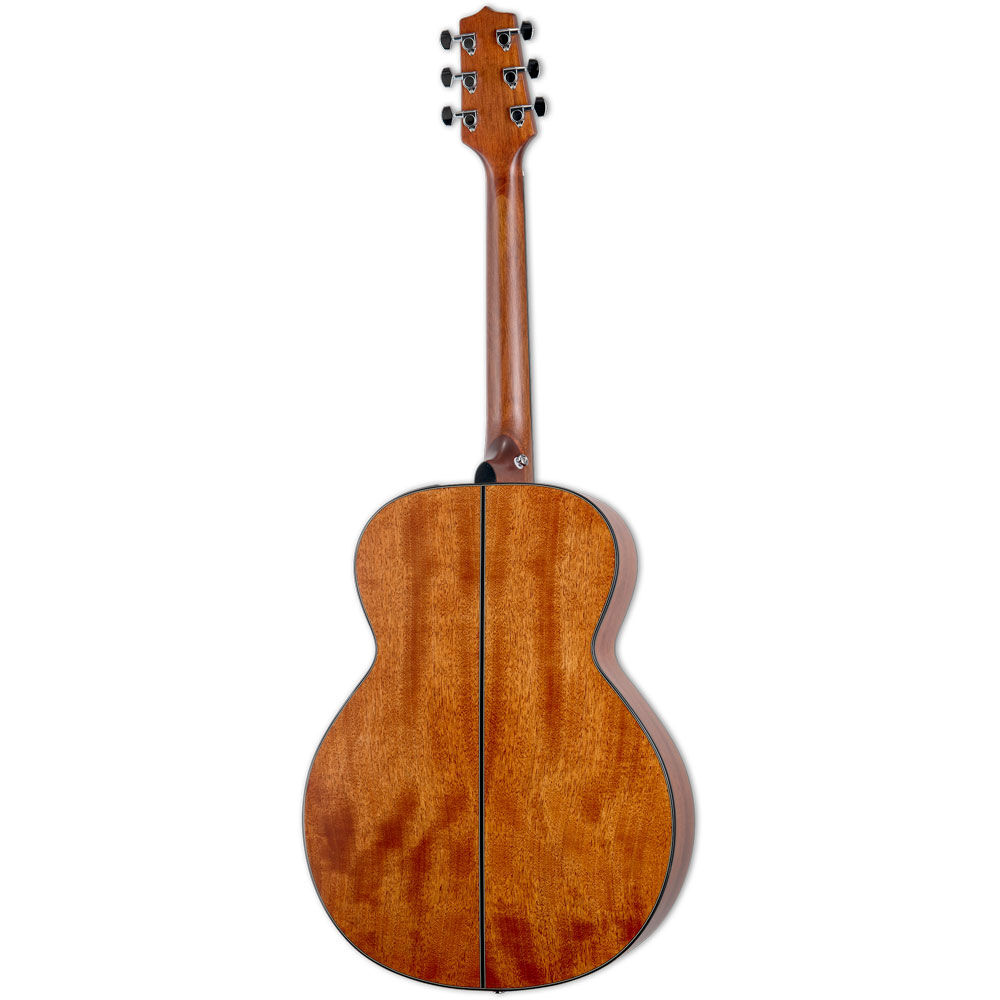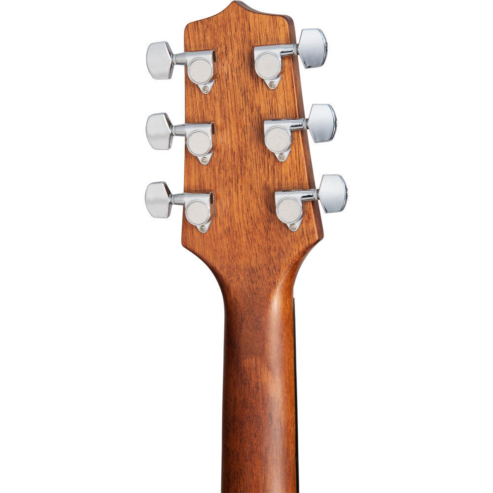 The okoume top combined with the okoume back and sides create a rustic, rootsy sound that delivers robust fundamental tones. The slim satin-finish mahogany neck and 12" radius jatoba fingerboard provide great feel and playability,