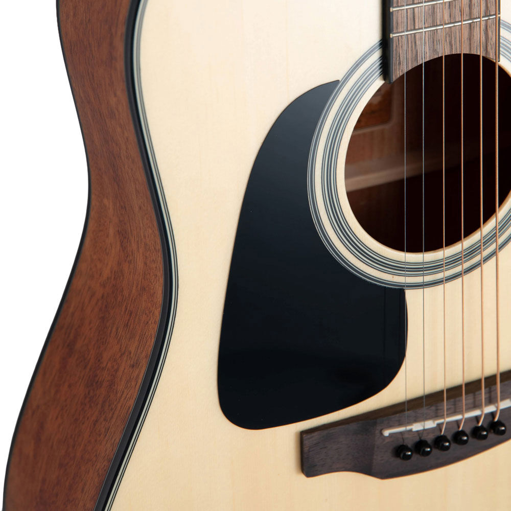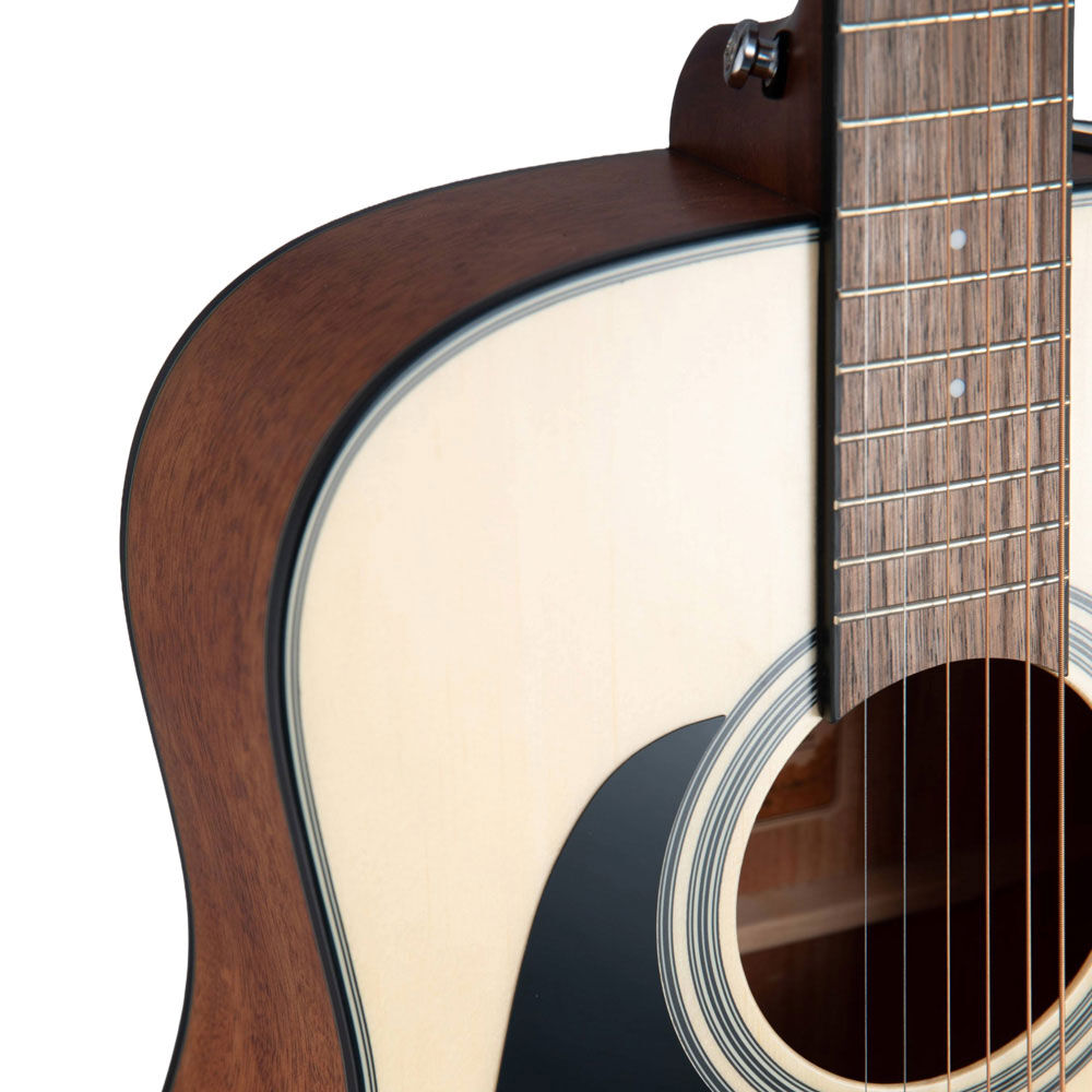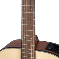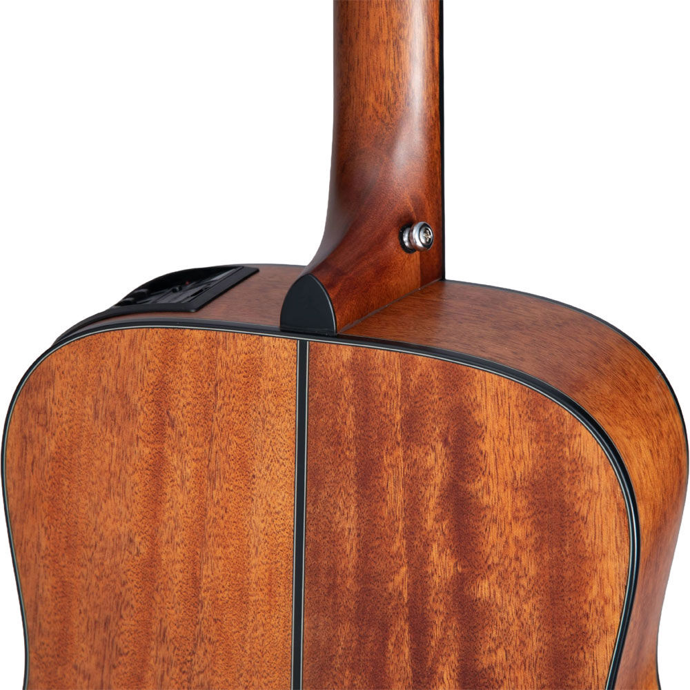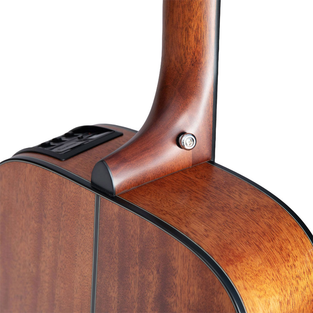 This provides a softer, warmer sound due to the lowered tension of the 630mm scale and is undoubtedly easier to play for beginner players to learn and have fun. The spruce top articulates the percussive richness of the okoume back and sides for a bold voice. The slim satin-finish mahogany neck and 12" radius jatoba fingerboard provide great feel and playability,