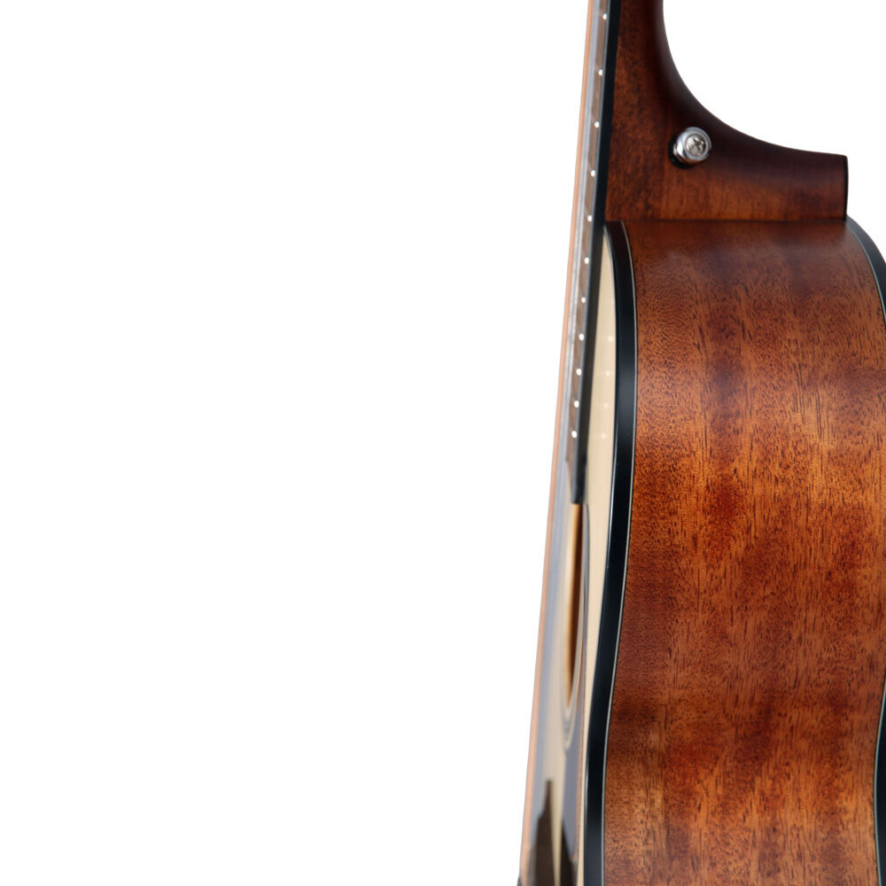 The spruce top articulates the syrupy mids of the okoume back and sides for a pleasing voice.The slim satin-finish mahogany neck and 12" radius jatoba fingerboard provide great feel and playability,