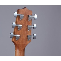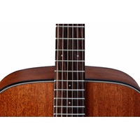 The slim satin-finish mahogany neck and 12" radius laurel fingerboard provide great feel and playability. Other great features include a synthetic bone nut and compensated bridge saddle, laurel headcap, dot inlays, chrome diecast tuners and an elegant Natural satin finish.