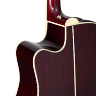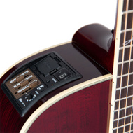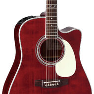 Since John's mastery isn't confined to a single musical genre, his main concern was sonic flexibility. The JJ325SRC dreadnought features a solid Sitka Spruce top with revolutionary Wonder Rosewood back and sides. The guitar's body and neck are bound with elegant ivory-coloured ABS. The guitar is voiced to cover a broad tonal spectrum with depth for power and a shimmering upper mid-range for articulation and clarity and features a gloss red finish, JJ inlay at the 12th fret and gold tuners with ivory buttons on the keys.