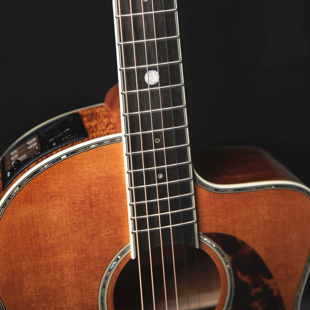 To befit Limited Edition status, the body of both models are trimmed with gorgeous abalone inlay. The worthy and gorgeous abalone trim inlay applied to the top board of the LTD2022 has accentuated the feeling and texture of the spruce top board which is painted in matching the color tone of Hawaiian Koa on the Back & Sides.