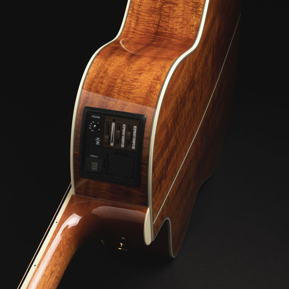 The back and sides of the LTD2022 are made of the finest Hawaiian Koa, carefully selected by its beautiful figured grain, and employs a solid Sitka spruce top of matching color tone. The top-graded spruce top and specially shaped tone bar bracings are specifically designed to express the focused, dynamic nuances desired from a smaller body guitar.