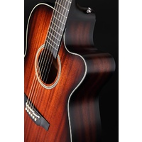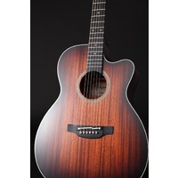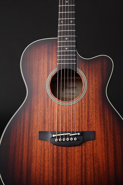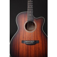 With a punchy mid-range that's often associated with acoustic blues or roots music, the TCP771MCSB is a solid "American" Mahogany guitar with a striking Satin Shadow Burst finish. Takamine's legendary CTP3 CoolTube electronics ensure that the guitar's natural voice translates to the stage. Comes with Takamine SH200A Case.