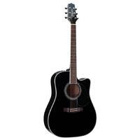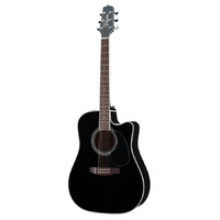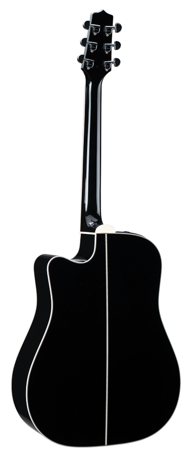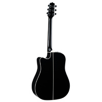 This guitar has been the choice of pro musicians of all genres. The versatility of this guitar begins with its solid cedar top that can play sweet mellow passages or power chords with equal ability. The maple back and sides are a perfect reflector for the tone generated by the soundboard and the gloss black finish looks great under the stage lights.
