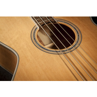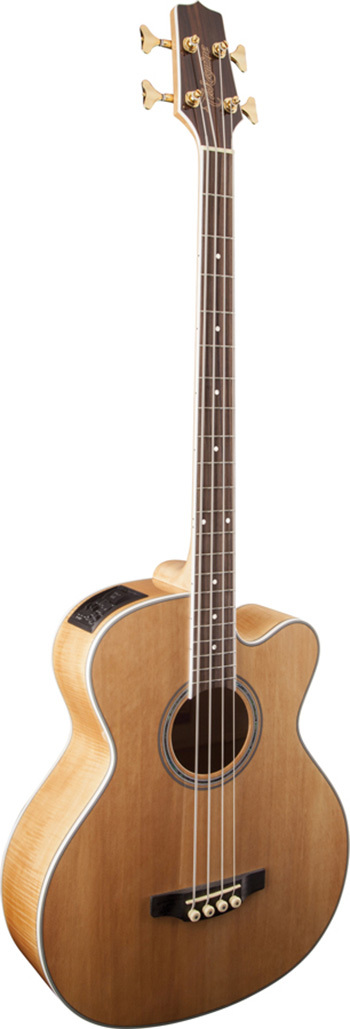 Featuring a solid spruce top and flamed maple back and sides, the TGB72CE produces all the volume and robust sound that players expect from a jumbo bass guitar.
