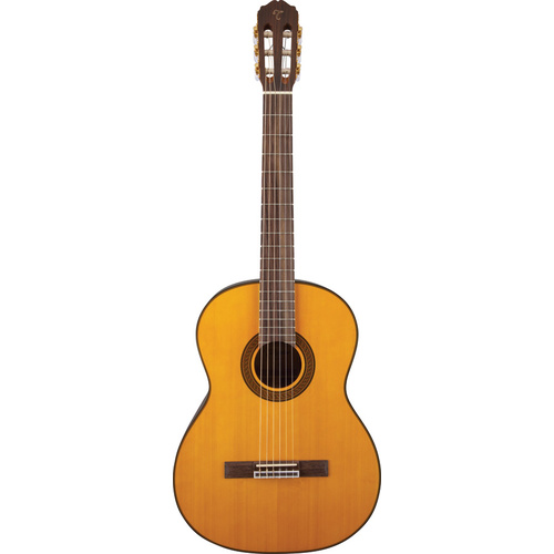 The TGC5 is an elegant classical guitar that features deluxe cosmetic appointments, solid top construction and a warm, resonant sound that will bring out the best in your music. An ideal choice for players looking for a refined and well-balanced classical guitar, the TGC5 combines a fan braced solid spruce top with black walnut back and sides to produce all of the rich, nylon string tone players expect from a Takamine classical guitar.