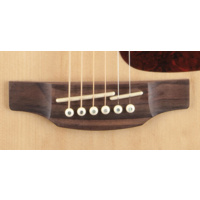 Other great features include maple body, neck and headstock binding, synthetic bone nut and split bridge saddle, laurel headcap, abalone rosette, abalone dot inlays, gold diecast tuners with amber buttons and a beautiful gloss finish. Available in Natural and Sunburst.