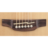 Other premium features include maple body, neck and headstock binding, dark wood rosette and body purfling, synthetic bone nut and split bridge saddle, laurel headcap, abalone dot inlays, gold die cast tuners with black buttons and a beautiful gloss finish.