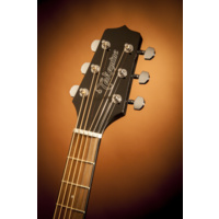 Other great features include a pinless ovangkol bridge, synthetic bone nut and split bridge saddle, ovangkol headcap, pearloid rosette and dot inlays, chrome diecast tuners and a beautiful gloss finish. Available in Natural, Black and Sunburst.