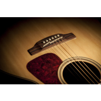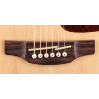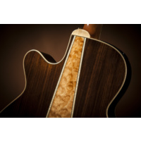 Other premium features include maple body, neck and headstock binding, dark wood rosette and body purfling, synthetic bone nut and split bridge saddle, laurel headcap, abalone dot inlays, gold die cast tuners with black buttons and a beautiful gloss finish.