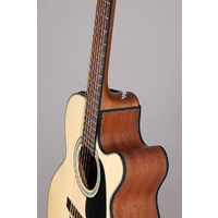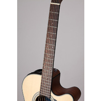The Takamini TGX18CENS is a 3/4 size guitar with a full size voice. Featuring custom designed bracing, a solid spruce top in a scaled down version of the famous Takamine NEX body style, this very worthy instrument will win your playing time.
