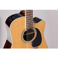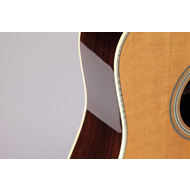 The pre-aged properties of the Takamine Solid 'Thermal Top' with Solid Indian Rosewood back and sides deliver an extra measure of low-end horsepower with this classic cutaway dreadnought. Grained ivoroid binding, diecast chrome tuners and understated 'T' logo appropriately accentuate the wide-open vintage tone of this killer instrument