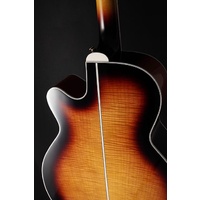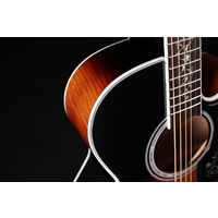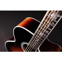 The result is the volume and tone of a well-seasoned vintage guitar in a brand new instrument. The NEX shape of the TEF450CTTBSB, is an original Takamine body shape and is a scaled down jumbo at heart. The NEX has a silky balance to the tone that supports vocals beautifully.