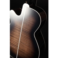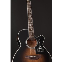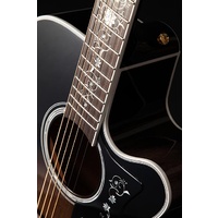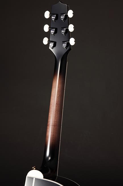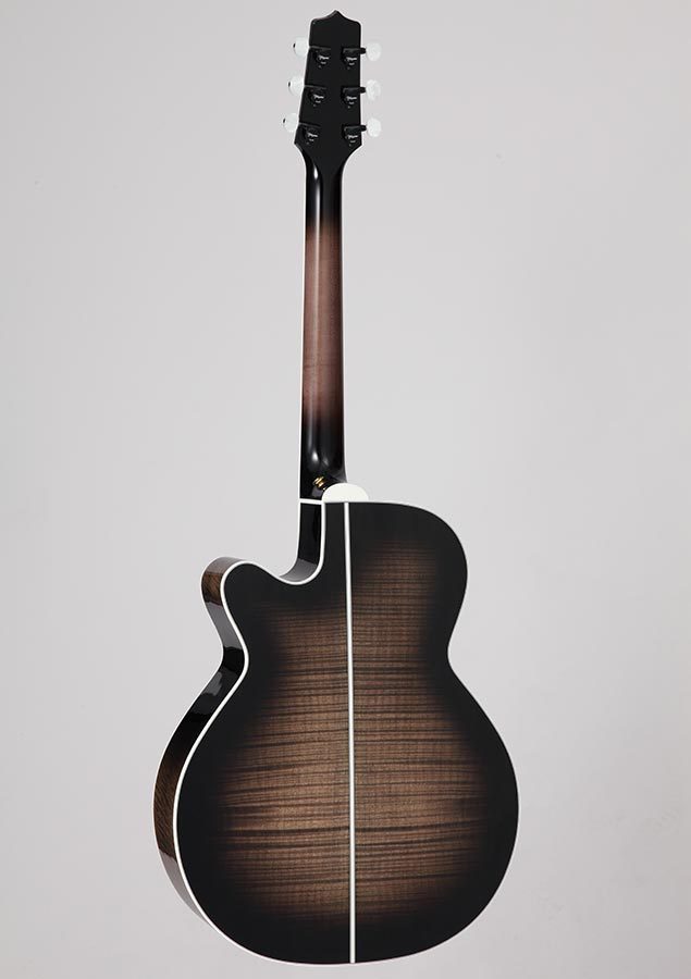 The result is the volume and tone of a well-seasoned vintage guitar in a brand new instrument. The NEX shape of the TEF450CTTTBB, is an original Takamine body shape and is a scaled down jumbo at heart. The NEX has a silky balance to the tone that supports vocals beautifully.