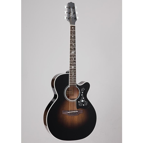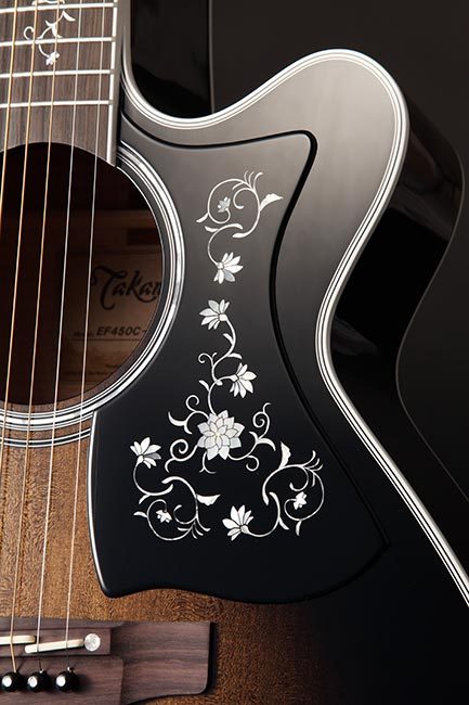 An elegant Venetian cutaway offers optimum access to the upper registers. The TEF450CTTTBB is a beautifully made instrument, featuring "Grass Flower" inlays made from hundreds of pieces of abalone and pearl. The neck is made of maple with a striped ebony fingerboard. The body features beautifully flamed maple on the back and sides, giving the player a bold and articulate voice. The unique Takamine split-saddle bone bridge provides faultless intonation and excellent acoustic coupling to the top. Like the other guitars in the TT Series, it features the TLD2 Line Driver preamp and Takamine's legendary Palathetic pickup system. Comes with Takamine SH200A Case.