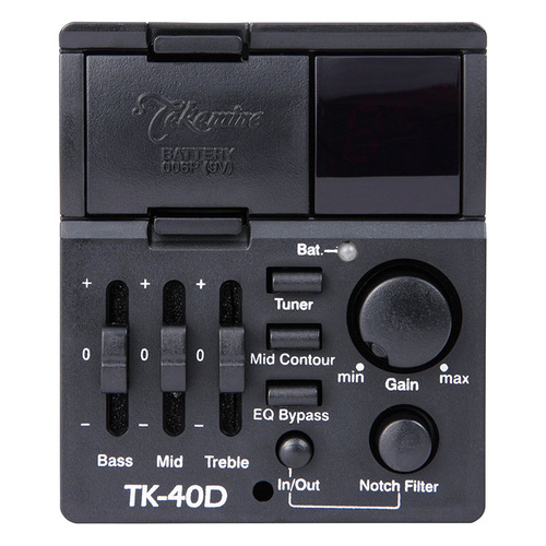 Takamine TK-40D preamp system gives you a built-in tuner, three-band EQ and gain controls, mid contour switch, notch filter and EQ bypass switch for the ultimate in versatility and sound quality.