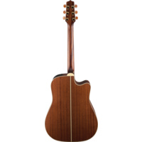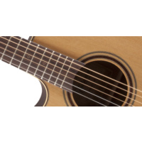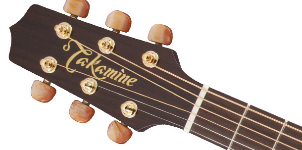 The solid cedar top features hand-scalloped X bracing and ivory binding, with dark purfling and a gorgeous concentric-ring rosette with wood marquetry. An elegant Venetian cutaway offers optimum access to the upper registers. The unique Takamine split bone saddle bridge provides faultless intonation and excellent acoustic coupling to the top.