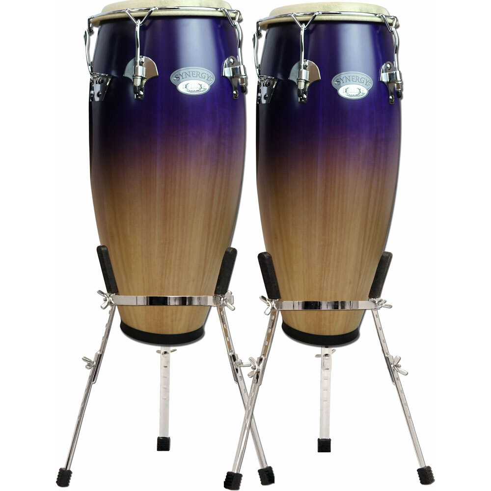 The Congas have 28" tall, two-ply Asian Oak wood shells with Tucked Fiberskyn heads by Remo. They feature low contact counterhoops for more open sound & chrome hardware. Finished in a beautiful Luxe matte, Purple Fade. Adjustable basket stands included with each drum.