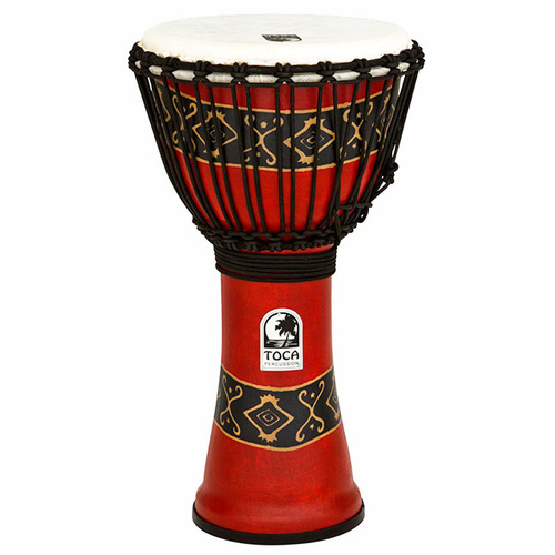 The new heads eliminate the stretching, drying, and loss of pitch that can occur with natural skin heads due to changes in weather conditions. Thus they offer greater consistency in sound. Synthetic heads can also be tensioned over a wider range, making them able to produce higher, crisper slaps and deeper bass tones. Freestyle II Rope Djembes have also been improved with an increased number of rope runners that allow for improved tuning.
