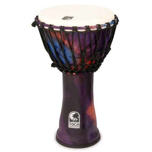 The new heads eliminate the stretching, drying, and loss of pitch that can occur with natural skin heads due to changes in weather conditions. Thus they offer greater consistency in sound. Synthetic heads can also be tensioned over a wider range, making them able to produce higher, crisper slaps and deeper bass tones. Freestyle II Rope Djembes have also been improved with an increased number of rope runners that allow for improved tuning.