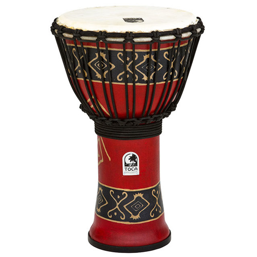 The new heads eliminate the stretching, drying, and loss of pitch that can occur with natural skin heads due to changes in weather conditions. Thus they offer greater consistency in sound. Synthetic heads can also be tensioned over a wider range, making them able to produce higher, crisper slaps and deeper bass tones. Freestyle II Rope Djembes have also been improved with an increased number of rope runners that allow for improved tuning.