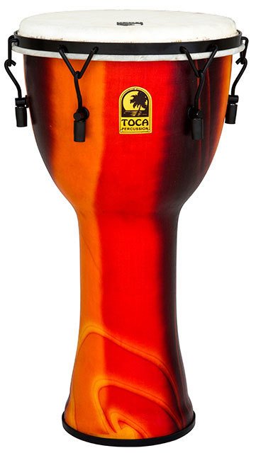 Freestyle II Mechanically Tuned Djembes now take the next step in performance with the installation of all-weather synthetic heads.