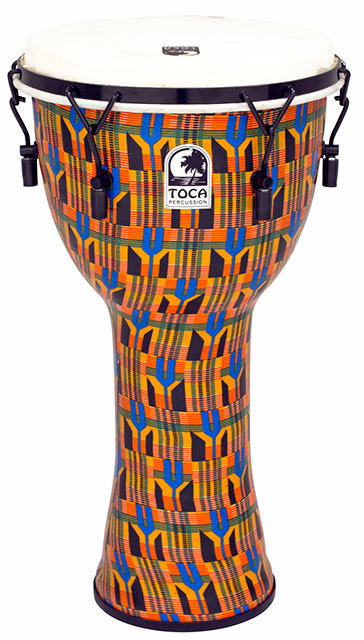 Kente Cloth Print design on wrap and also includes a convenient tuning wrench.