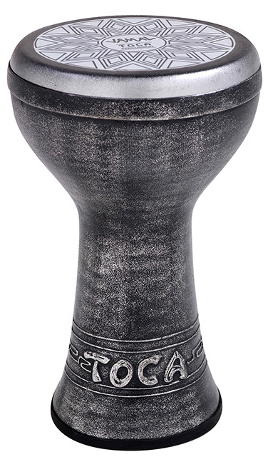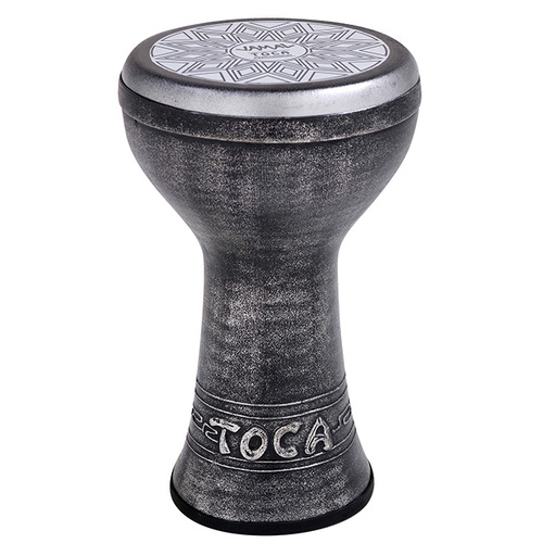 The Jamal Doumbek was designed in collaboration with doumbek master, Jamal Mohamed. It is an extremely durable drum made with a precision balanced, fiberglass shell and a protective rubber bottom. The Jamal Doumbek is specially designed to deliver rich, deep doums and crisp, high teks. A pre-stretched synthetic head features custom graphics and the shell shimmers with a hand-painted, antiqued silver finish.