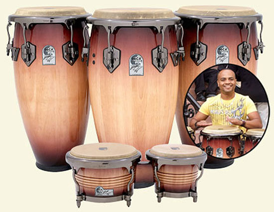 Eric's beats reach frightening speed, generating an exciting mix of low rumbles and crisp highs. For this technique, he prefers congas and bongos that are sensitive to fingertips and loud slaps. Together with Toca, he created a line that lets him express himself the way he wants.