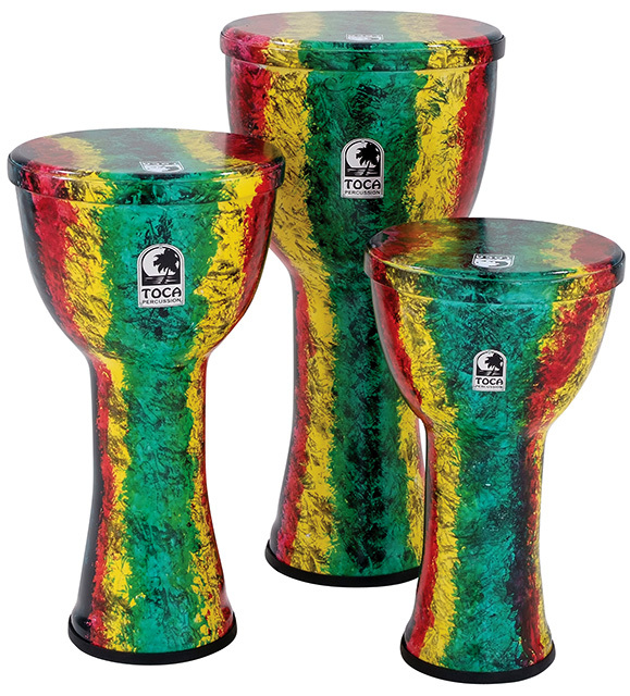 Toca Lightweights Series Hand Drums. This patented hybrid design is a combination of a doumbek and djembe drum. It produces clean open tones and bass tones along with crisp slaps, which make it an excellent drum for soloing.