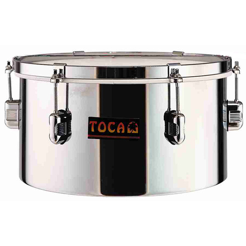 Toca Classic single 13" timbale features a Chromed Steel Shell, Solid Steel Hoops with mini hoop clips for maximum playing surface, drum key style tuning.