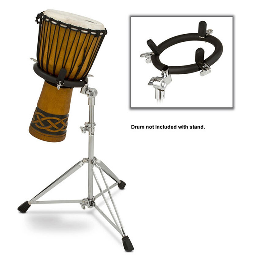 The Toca World Percussion Stand holds up to 12" sized Djembes, Doumbeks, Ashikos, Udus and things in-between.