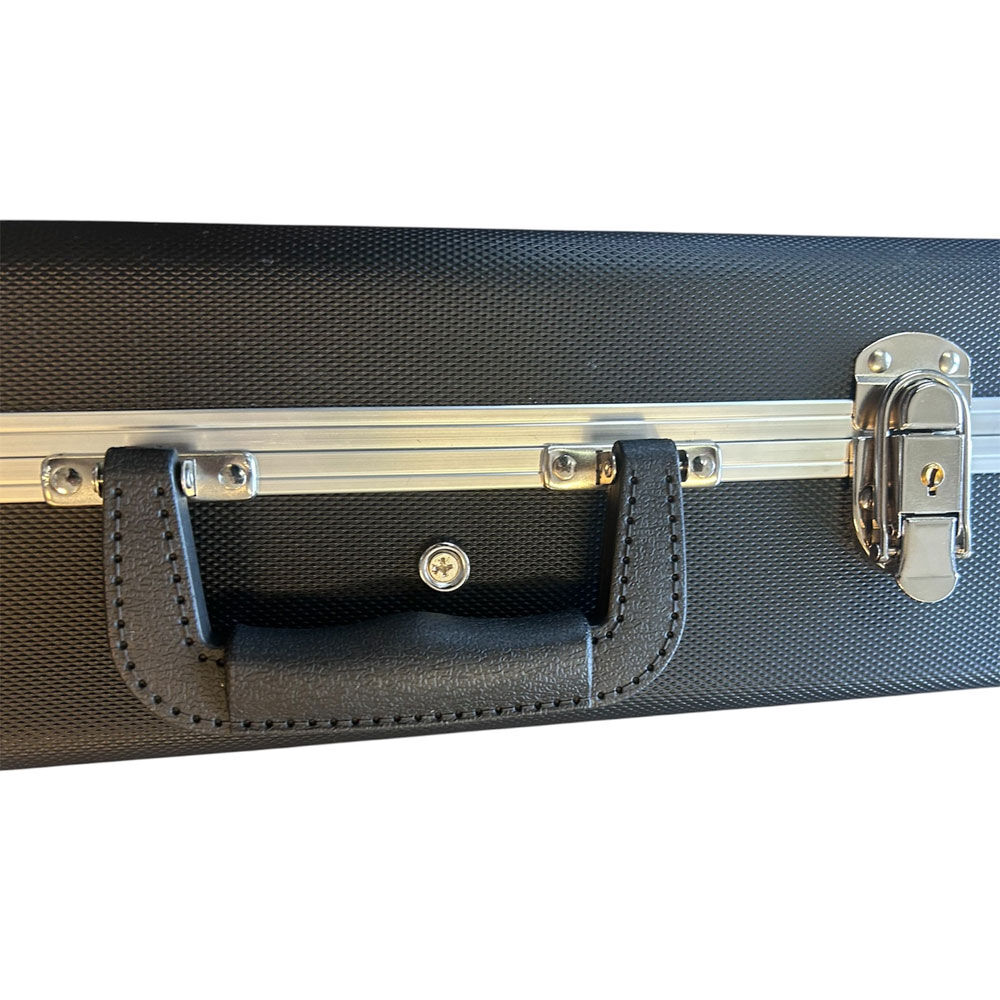 This deluxe molded electric guitar case is made from the finest eco-friendly ABS plastic with an ultra-strong extruded tongue-and-groove aluminum valance.