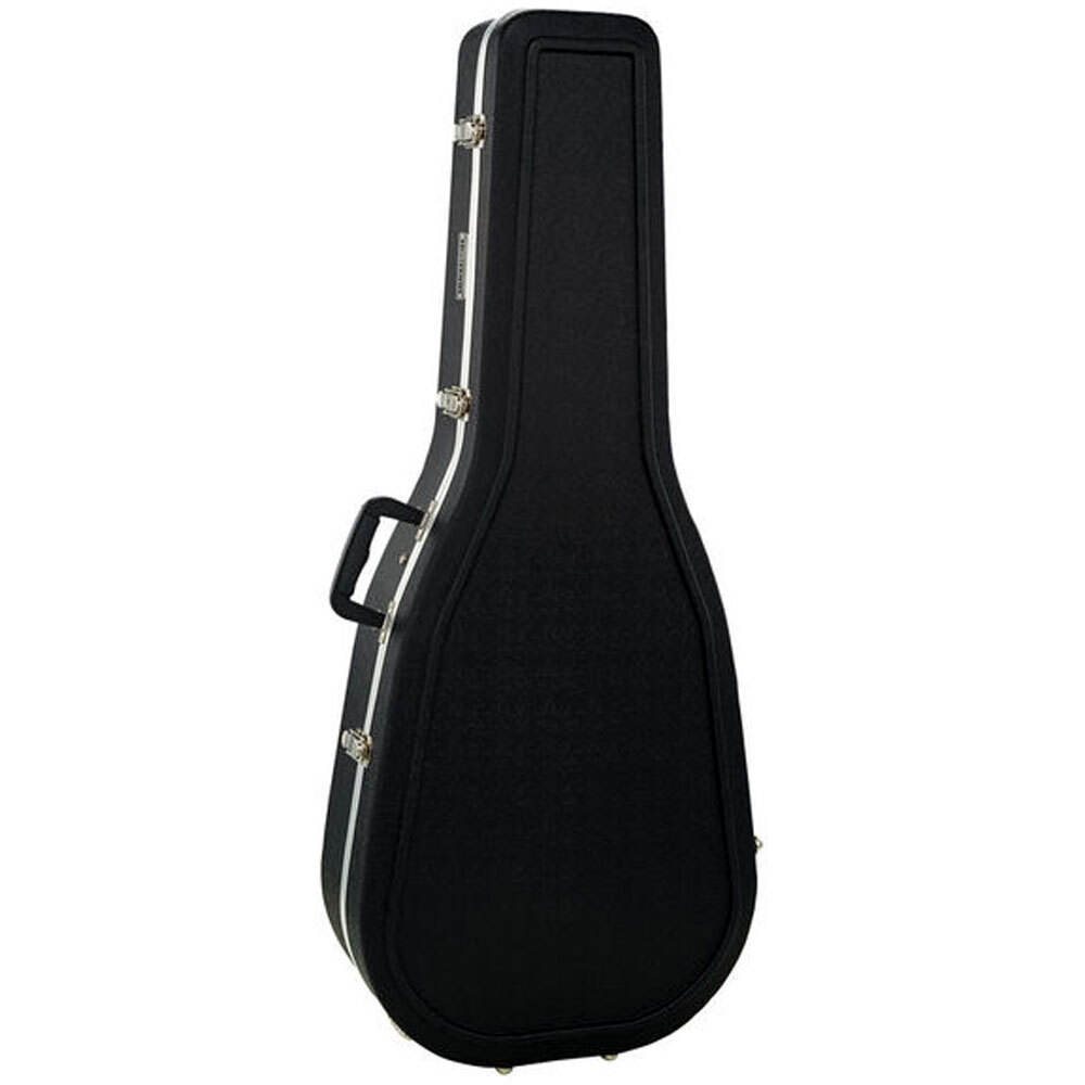 This deluxe molded acoustic guitar case is made from the finest eco-friendly ABS plastic with an ultra-strong extruded tongue-and-groove aluminum valance.