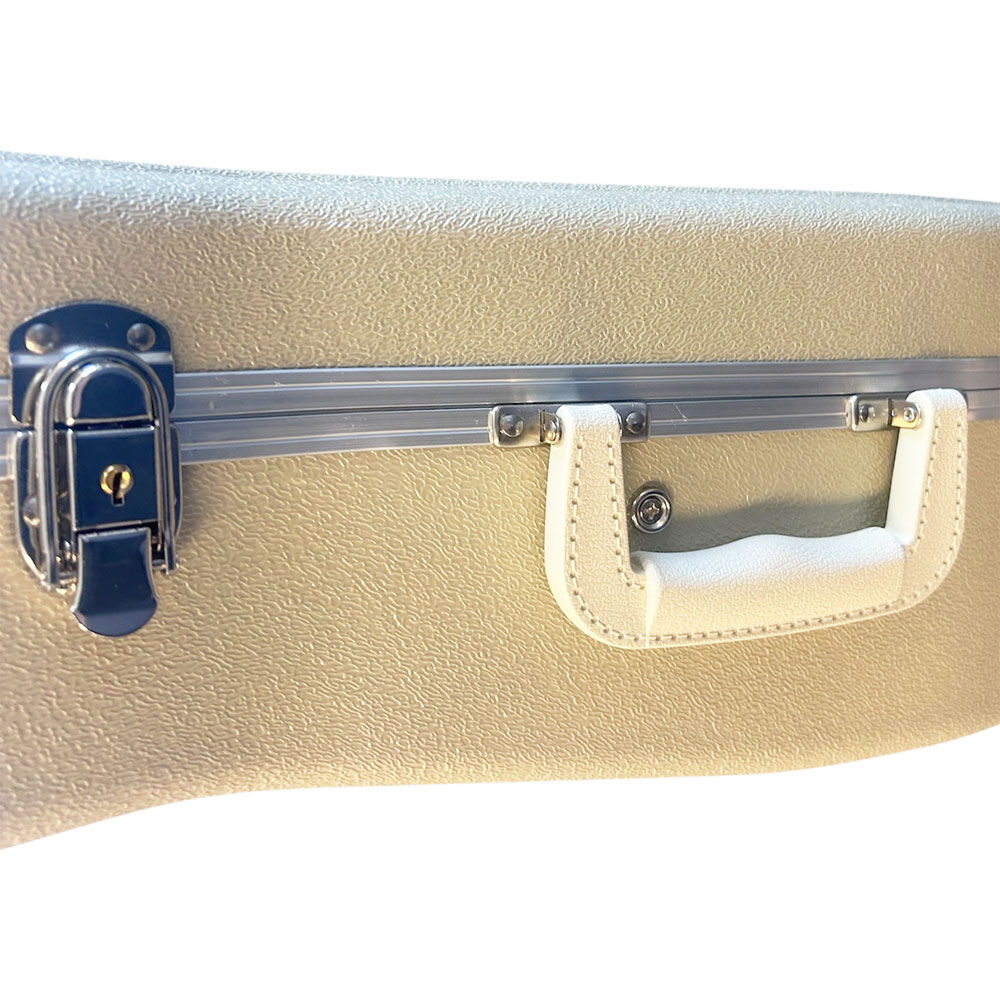 This deluxe molded acoustic guitar case is made from the finest eco-friendly ABS plastic with an ultra-strong extruded tongue-and-groove aluminum valance.
