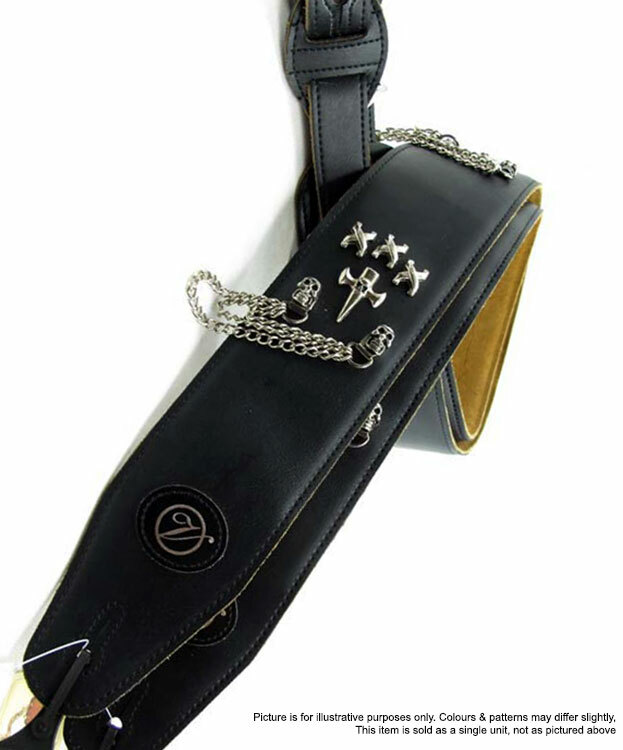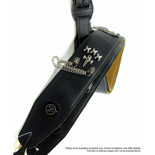 Vorson Black Leather Guitar Strap with Crosses, Chains & Skulls